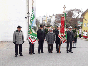 Danach marschierten die Vereine zum Kirchplatz zur Fahnenversorgung und Verabschiedung durch Obmann Hermann Windbacher.