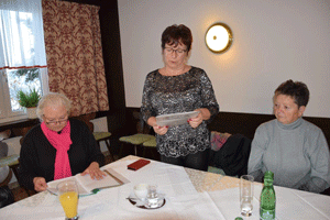 Krankheitsbedingt waren heuer weniger Mitglieder anwesend, dennoch erfolgte eine sinnliche Gestaltung der vorweihnachtlichen Feierstunde mit etlichen Gedichten und Geschichten zur Advent- bzw. Weihnachtszeit, vorgetragen von Kassierin Luise Jöbstl sowie von KassierStv Edeltraud Reiterer.