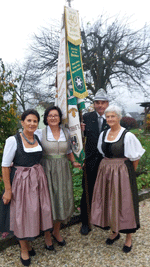 Frau Herta Gölles, Frau Traude Lehr und Frau Marlies Schmidt als neue Patinnen hefteten als Zeichen der Ehre und Treue ein schönes, neues Fahnenband auf unsere Ortsverbandsfahne. |