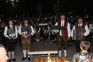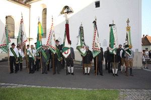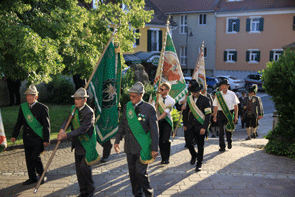 Als die Abenddämmerung anbrach hieß es Aufstellung nehmen für den Fahnenblock, die Kameradschaftsverbände und Ehrengäste. Die Kommandoführung lag bei Obstlt Christian Puntigam.