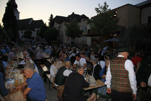 Dann kam der Höhepunkt: 150 MusikerInnen brachten den Großen Österreichischen Zapfenstreich zur Aufführung. Unter der Leitung von Bezirkskapellmeister Mag. Karl Heinz Promitzer spielten die Musikvereine Eichkögl, Kirchberg, Paldau und Gnas in einem großen Orchester. Das Trompetensolo von Ewald Neuherz und Markus Promitzer erklang aus großen Höhen.