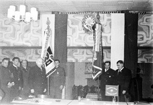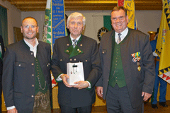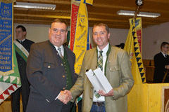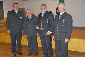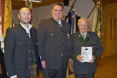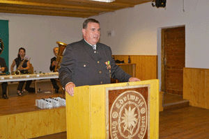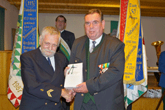 Der Vorstand bedankte sich mit einem Ehrenpräsent bei allen Festrednern und nach den Festansprachen übernahm Thomas Kastl das Kommando über die Fahnenabordnungen und marschierte zu den Klängen eines Marsches aus dem Festsaal aus. Nach dem Ausmarsch der Fahnen hielt Obmann Alfred Stadlhofer seine Festansprache, in der er die Geburtsstunden des Ortsverbandes Leoben sowie einen auszugsweisen Tätigkeitsbericht und die Verbandshighlights der vergangenen 60 Jahre im Zeitraffer brachte. Einen weiteren erfreulichen Höhepunkt stellten die nun folgenden Auszeichnungen für besondere Verdienste um den Ortsverband Leoben dar, der unter der Patronanz unseres LVO Bgdr i.R. Josef Paul Puntigam und des LEO Vzlt i.R. Adolf Pregetter durch Obmann Alfred Stadlhofer durchgeführt wurde.