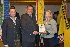 Eine Ehre war es, zahlreiche Ehrengäste willkommen heißen zu dürfen, die unserer Einladung gefolgt waren. An der Spitze unser Herr Bezirkshauptmann und Protektor des OV Leoben, HR Dr. Walter Kreutzwiesner, in Vertretung des Bürgermeisters von Leoben Kurt Wallner, Herrn Gemeinderat Erich Landner sowie Herrn OStR Prof. Dr. Franz Sammt. Eine besondere Freude und Ehre erwies uns unsere Fahnenmutter Frau Baronin Eva Mayr-Melnhof-Saurau mit ihrer Anwesenheit an der Veranstaltung. Von den Soldaten- und Traditionsverbänden gaben uns - der Traditionsverband des k.u.k. Feldjägerbataillons Nr. 9 unter ihrem VerbandsKdt Peter Bärnthaler - der ÖKB Stadtverband Leoben mit Geschf. Obmann Josef Pirker - der ÖKB Frohnleiten unter dem Kommando von Obmann-Stv Johann Weber - der Heimkehrerverband Steiermark mit Fahnenoffizier Kam. Franz Trammer - unsere Freunde der Marinekameradschaft Albatros mit ihrem Obmann Günter Saiger - der TV Steirerherzen Seegraben unter der Führung ihres Obmannes Johann Leicht mit Fahnen und starken Abordnungen die Ehre. Vom Landesverband der Kameradschaft vom Edelweiß Steiermark wurden - LVO Bgdr i.R. Josef Paul Puntigam - Landesehrenobmann Vzlt i.R. Adolf Pregetter - WebMaster Franz Kerschbaum - Pressechef Kurt Bübl mit einem kräftigen Horridoh begrüßt und nicht zuletzt galt der Willkommensgruß den Fahnenpatinnen Gertrude Hebenstreit, Christine Krenmair, Monika Mühlhans, Lotte Narnhofer, Sieglinde Schwarzkogler und Maria Stadlhofer. Vom Stadtmagazin wurde Frau Anna Leeb herzlich begrüßt. Nach der Begrüßung und den einleitenden Worten unseres Moderators Thomas Kastl wurde die Ehre des Wortes unseren Ehrengästen zuteil. Hierbei durfte unser Ortsverband die Glückwünsche und Gratulationen zum Jubiläum im Zuge der Grußbotschaften entgegennehmen. Von der Marinekameradschaft ALBATROS erhielt der Ortsverband ein Sonderheft „Zum 60 Jahr-Jubiläum“ mit einem Gedicht „60 Jahre Kameradschaft Edelweiss“ geschrieben und auch vorgetragen von Reini Gutmann.