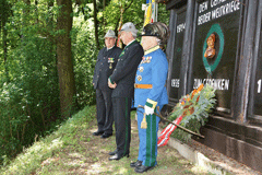 Dieses stolze Jubiläum unseres Ortsverbandes nahmen wir am 10. Juni 2017 zum Anlass, nicht nur unsere Leobner Kameradenfrauen und Kameraden, Funktionsträger des Landesverbandes sondern auch Ehrengäste aus Politik und öffentlichem Leben, Gönner und Förderer unserer Kameradschaft und befreundete Traditions- und Kameradschaftsverbände zu einer Feier einzuladen. Die Veranstaltung wurde in zwei Blöcken abgehalten, wobei mit einer Totengedenkfeier am neu hergerichteten Mahnmal des Friedens eröffnet wurde. Die Gedenkfeier wurde durch das Quartett der Stadtkapelle Kapfenberg mit einem Choral eingeleitet und in weiterer Folge musikalisch gestaltet. Hier im schattigen Wald konnte Ortsverbandsobmann Alfred Stadlhofer bereits zahlreiche Mitglieder und Gäste begrüßen und Worte des Gedenkens für die Opfer von Gewalt und Kriegen, für unsere verstorbenen Mitglieder, im Besonderen für die Kameraden die vor 60 Jahren diesen Ortsverband gegründet hatten aber auch für alle in neuzeitlichen Konflikten gefallenen, verunglückten und verstorbenen Kameraden aller Einsatzorganisationen sprechen.