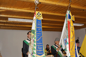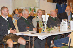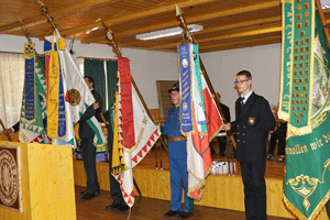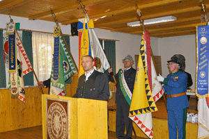 Nach umrahmenden Worten und einem Gebet von Msgr. OStR Prof. Dr. Franz Sammt, danach folgend der Gedenkansprache unseres Protektors HR Dr. Walter Kreutzwiesner, wurde der vom Österreichischen Schwarzen Kreuz gestiftete Kranz durch den Kurator Vzlt i.R. Peter Bärnthaler, den Protektor und den Obmann des OV Leoben zu den Klängen des guten Kameraden niedergelegt. Obmann Stadlhofer bedankte sich abschließend bei Allen für ihre Teilnahme und lud zum eigentlichen 60-Jahres Festakt in das Vereinslokal des Trachtenvereins Steirerherzen Seegraben, wohin zu Fuß verlegt wurde. Nach dem Einmarsch der Fahnen in das Vereinslokal zu den Klängen der Landeshymne, wiederum intoniert vom Quartett der Stadtkapelle Kapfenberg, begrüßte Obmann-Stv Thomas Kastl die Gäste.