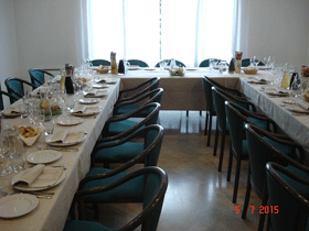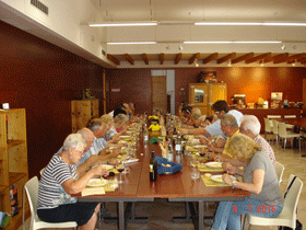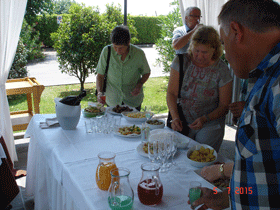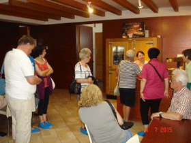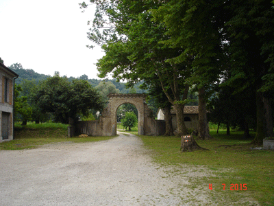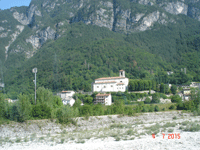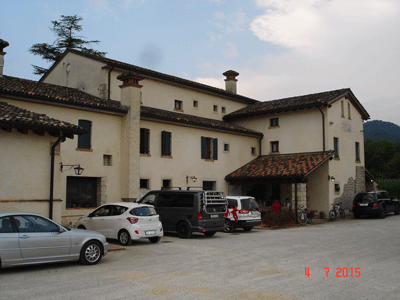 Anhand einer überdimensionalen Schautafel inmitten riesiger Weintanks erläuterte uns Signore Gregorio anschaulich und verständlich die Herstellung seines Proseccos. So wurden wir auch in den Unterschied zwischen Frizzante und Spumante eingeweiht. Nach dieser interessanten Einweisung ging es vom Keller nach oben in den wohl temperierten Degustationsraum des Anwesens. Dort wurden wir wieder mit einer gedeckten Tafel mit Schinken, Salami Käse, Melonen, Gemüse und italienischem Brot überrascht. Dazu verkosteten wir neun Sorten des produzierten Proseccos unter der fachkundigen Anleitung des Weingutbesitzers. Nach Beendigung dieses lukullischen Hochgenusses hatten wir Gelegenheit Prosecco und auch Grappa einzukaufen, wovon ausgiebig Gebrauch gemacht wurde. Nach Verewigung im Gästebuch, natürlich wieder mit Edelweiß-Abziehbild, bedankten sich Reiseleiter Erich und Obmann Alfred für die ausgezeichnete Führung und Bewirtung, so dass sich auch Signore Gregorio veranlasst sah, sich im Bus mittels Bordmikrofon herzlich bei uns allen zu bedanken und sich zu verabschieden. Am frühen Abend fuhren wir dann zum Zielpunkt der samstäglichen Reise, nach La Bella/Follina, wo wir unsere Unterkunft, das Agritur La Bella, bezogen. Dieses Hotel/Ristorante hatte extra für unsere Reisegesellschaft eine Hochzeitsfeier abgesagt, da unsere Reiseorganisatoren Monika und Erich Mühlhans auch hier wohlbekannt sind und uns das somit zugutekam. Das Agritur La Bella ist abseits der Hauptstraße in malerischer Umgebung gelegen und präsentiert sich mit seinen Steinmauern wie ein Landherrensitz. Innen modern und schön eingerichtet, außen im Altherrenstil seit Jahren nahezu naturbelassen.