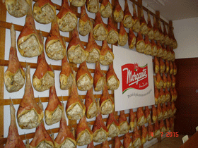 Zwischendurch startete Obmann Alfred ein Spiel, indem er einen Teil des Einsatzes, aufgrund hervorragender Reisekalkulation, wieder an die Reiseteilnehmer zurückerstattete. Das wiederholte sich während unserer Reise insgesamt drei Mal. Die Fahrt gestaltete sich so sehr kurzweilig und bald war unser erstes Reiseziel, der Prosciuttohersteller Morgante in San Daniele, erreicht. Wir wurden von einer perfekt deutsch sprechenden Vertreterin des Unternehmens begrüßt und danach durch das Unternehmen geführt. Anschaulich präsentiert erfuhren wir alle Schritte und Stationen von der Anlieferung der Schweinekeulen bis zum perfekt gereiften Schinken und worauf es der Firma mit ihren hohen Qualitätsansprüchen bei der Reifung der Schinken ankommt. So liegt die Herstellungskapazität bei 250.000 Stück/Jahr, die tatsächliche Produktion ist aber aufgrund der in der Region San Daniele streng überwachten Regeln derzeit auf 150.000 Stück/Jahr beschränkt.