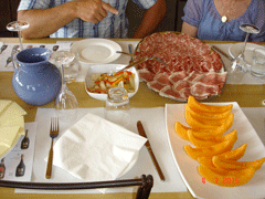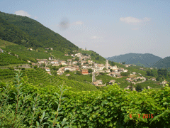 Nach Beendigung des Firmenrundganges erwartete uns der erste kulinarische Hochgenuss unserer Reise: es wurde als Vorspeise Tagliolini al San Daniele (ganz dünne Bandnudeln mit Sahne und Prosciutto, mit Mohn bestreut) serviert, dazu Wasser aber auch Weiß- und Rotwein. Dessen nicht genug wurde danach eine Riesenportion Prosciutto San Daniele mit Tomaten, Mozarella und Ruccolasalat kredenzt. Mit vollgeschlagenen Bäuchen hatten wir im Anschluss die Gelegenheit, uns mit Produkten der Firma Morgante einzudecken. Zum Abschluss bedankte sich Reiseführer Erich im Namen unserer Reisegesellschaft für die hervorragende Führung und ausgezeichnete Bewirtung und verewigte uns mit einem Edelweiß-Abziehbild mit entsprechendem Dankestext im Besucherbuch des Schinkenherstellers Morgante. Weiter ging die Fahrt in das Proseccogebiet nach Valdobbiadene zum renommierten Weingut Ca`Salina. Durch eine wunderschöne hügelige Landschaft, wo jeder verfügbare Meter des Bodens mit Weinreben bepflanzt ist, auf enger, kurvenreicher Straße, pilotierte uns Kurt sicher auf den Hügel zum Weingut, wo wir bereits erwartet wurden. Der Firmeninhaber Gregorio Bortolin persönlich begrüßte uns mit der für Italien typischen Herzlichkeit und geleitete uns in das Herzstück der Weinerzeugung, den Keller.
