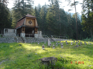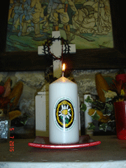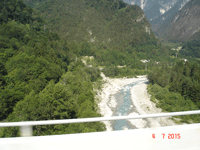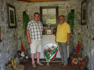 Leicht ermattet verabschiedeten wir uns von diesem Ort der kulinarischen Delikatessen und nahmen wieder im Bus Platz, der dank unseres Kurts wohl temperiert auf uns wartete. Im Freien hatte es doch deutlich über 30 Grad im Schatten. Nach einigen besinnlichen Minuten der Innenjalousienbetrachtung kam der Edelweiß-Korpsgeist wieder zurück und es wurde gesungen und gelacht, während dessen Kurt tapfer Richtung Heimat steuerte. Getreu unserer Statuten nahte ein weiterer Höhepunkt unserer Reise. Wir besuchten kurz vor der österreichischen Grenze einen Soldatenfriedhof in Wolfsbach/Valbruna und entzündeten im Gedenken an die Opfer der Kriege eine Edelweiß-Kerze und hielten jeder für sich eine Schweigeminute.