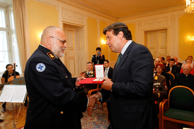 Im Namen der Republik Österreich und des Bundespräsidenten Heinz Fischer überreichte Landeshauptmann Mag. Franz VOVES am 25. Mai 2011 im feierlichen Rahmen im Beisein hoher politischer und öffentlicher Vertreter im Weißen Saal der Grazer Burg die Auszeichnung. |