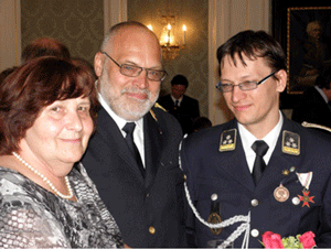 die zu verleihenden Auszeichnungen Vzlt RAUTER mit Lebenspartnerin Traude SCHEIFLER und Sohn Michael