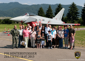 Am 18. Juli 2013 besuchten Kameradinnen und Kameraden des Ortsverbandes LEOBEN den Fliegerhorst HINTERSTOISSER in ZELTWEG. Bei ausgezeichnetem Wetter und guter Laune wurden wir in der Kaserne ZELTWEG von unserem Kameraden OStWm Thomas KASTL empfangen, welcher die Führung innerhalb des Fliegerhorstes übernahm. Es erfolgte zuerst eine Information über die Organisation und Aufgaben des FlH. In weiter Folge wurden einzelne Objekte innerhalb des Geländes besucht, wobei uns unser Kamerad fachkundig informierte. |