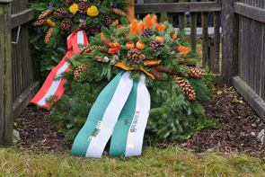 Zu diesem Lied wurde durch LAbg. Marco TRILLER, GR Erich LANDER und Obmann Alfred STADLHOFER, die Kränze der Stadtgemeinde Leoben und der Kameradschaft vom Edelweiß niedergelegt.