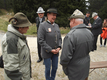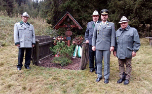 Da unser Hochwürden OStR Dr. Franz SAMMT sich aus gesundheitlichen Gründen entschuldigte, gedachten wir im Stillen an den unbekannten Soldaten im Grabe auf dem Pöllasattel sowie aller gefallenen Soldaten und Opfern der zurzeit geführten Kriegen und Unruhen. Nach einem geschichtlichen Vortrag von Kam. MÜHLSTEIN Erich legten der Herr Protektor Bgdr i.R. Josef Paul PUNTIGAM und der Obmann des OV Leoben unter den Klängen des Kameradenliedes einen Kranz nieder.