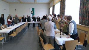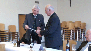 Unser Jubilar bedankte sich bei allen, sichtlich gerührt über diese Geschenke und Ehrungen und lud zum reichhaltigen Buffet.