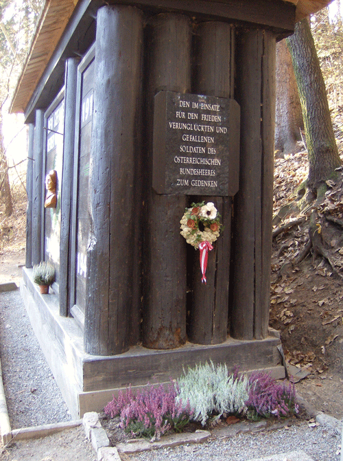 Im Frühjahr dieses Jahres kam bei einem Laufausflug Kam. KASTL Thomas an diesem Mahnmal vorüber und staunte über dessen Zustand, das dem Verfall preisgegeben war. Er übernahm die Initiative und organisierte als Obmann-Stv der Kameradschaft vom EDELWEISS, OV LEOBEN, mit dem ÖKB Stadtverband LEOBEN-NIKLASDORF-PROLEB und dem Österreichischen Bundesheer die Revitalisierung dieses Mahnmals. Durch die Zusammenarbeit dieser Organisationen sowie einiger Privatpersonen wurde eine Initiative zur Revitalisierung des Denkmals gestartet. Um auch einen Bezug zur Gegenwart herzustellen sollte, vorbehaltlich der Zustimmung durch das Bundesministerium für Landesverteidigung und Sport, eine würdige Gedenktafel für die im Einsatz gefallenen und verunglückten Soldaten des Österreichischen Bundesheeres angebracht werden. StWm KASTL Thomas, Kam. HUBER Erich, BezObmann Heinz LAUSECKER sowie mehrere Kameraden steckten etliche Arbeitsstunden in dieses Projekt. |