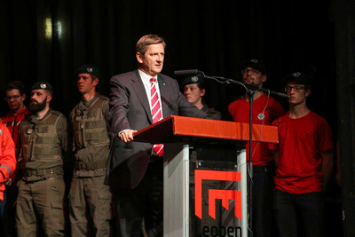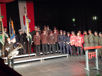 Die Stadtgemeinde Leoben lud unseren Ortsverband zum Festakt anlässlich des Österreichischen Nationalfeiertages am 25. Oktober 2017 ein. Dieser Einladung sind wir natürlich sehr gerne mit Fahne und Abordnung nachgekommen. Aus Platzgründen stand nur die Fahne mit Obmann auf der Bühne, weitere Mitglieder unseres Ortsverbandes der Kameradschaft vom Edelweiß saßen im Publikum. Eröffnet wurde mit einem gemeinsamen Gruppenfoto vor dem Stadttheater.