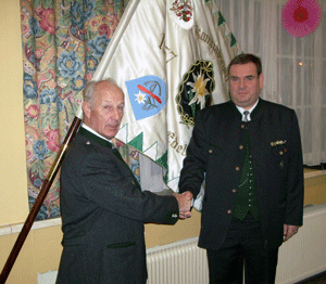Nach der Neuwahl erfolgte die Fahnenübernahme durch den neuen Obmann, Vzlt Alfred STADLHOFER mit den Worten: „Ich übernehme die Fahne, ich halte sie fest, es soll keiner sich finden, der die Fahne verlässt!“ Bei seiner Antrittsansprache bedankte sich der neue OV-Obmann für das Vertrauen und versprach im Sinne der Gründungsmitglieder, die diesen Ortsverband gründeten und an uns weitergaben, diese Arbeit mit dem neuen Vorstand weiterzuführen. Rückblick des scheidenden Obmannes Antrittsrede des neuen Obmannes Als Dankeschön für ihre langjährige Arbeit für die Kameradschaft vom EDELWEISS wurden unser Kam. Adolf PREGETTER zum Ehrenobmann sowie unsere KamFrau Roswitha PREGETTER zum Ehrenmitglied ernannt. Mit der Vorschau für das Verbandsjahr 2010 sowie dem Abspielen des Edelweißliedes wurde der Ortsverbandstag 2010 mit einem kameradschaftlichen Abend beendet. |