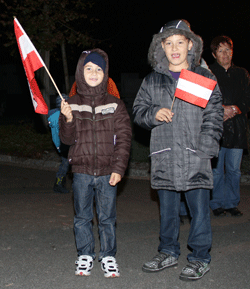 Nach der Begrüßung aller erschienenen Gäste und Ehrengäste durch den Obmann Franz Windisch wurde die Bundes- und die Landesfahne gehisst. Im Anschluss daran erinnerte Bürgermeister Florian Gölles in seiner Rede daran, warum solche Veranstaltungen in der heutigen Zeit Sinn gebend wirken können und referierte allgemein zum Thema Staatsfeiertag, wobei er auch ein Bekenntnis zur allgemeinen Wehrpflicht abgab. |