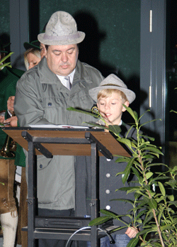 Der junge Peter Stocker überbrachte in ein- drucksvoller Weise eine Botschaft in Form eines Friedensgedichtes, die jedenTeil- nehmer zum Nachdenken anregte. |