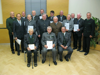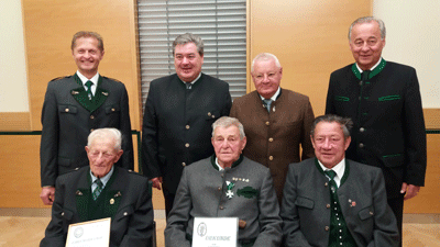 Johann Jury aus Oberdorfberg, Franz Riedl aus Mehlteuer und Josef Tappauf aus Erbersdorf wurden mit dem Treueabzeichen der Gebirgsjäger in Gold geehrt. Schmiedemeister Josef Hiebaum sen. erhielt das Verdienstkreuz der Kameradschaft vom Edelweiß in Silber. Eine besondere Ehrung erhielt Josef Tappauf, ihm wurde die Ehrenmitgliedschaft verliehen.