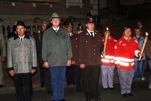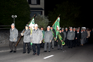 Am 25.Oktober 2009 fand die Ortsversammlung der Kameradschaft vom Edelweiß OV Kirchberg/Raab im Gasthof zum Kirchenwirt statt. Dem Tagungsprogramm der Ortsversammlung voraus findet alljährlich zuvor die Flaggenparade am Kirchberger Hauptplatz statt. Organisiert wird diese Feier sowie die anschließende Heldenehrung beim Gedenkstein am Kirchberger Friedhof von der Kameradschaft vom Edelweiß. Unter den Klängen der österreichischen Bundeshymne wurden die Flaggen gehisst. Vizebürgermeister Eduard Lehr betonte in seiner Festrede zum Nationalfeiertag, dass die Feierlichkeiten zum Nationalfeiertag eigentlich Geburtstagsfeste unserer schönen Heimat Österreich sind. Leider finden sich bei der Flaggenparade immer sehr wenige Geburtstagsgäste ein. „Denkmäler sind als festes Zeichen einer Botschaft in die Zukunft, an die überlebenden wohl aber auch an die nachfolgenden Generationen zu sehen!“ so Josef Schaffler bei der Heldenehrung am Friedhof. Es wurden zwei Kränze im Gedenken an die gefallenen und verstorbenen Kameraden niedergelegt. Ein Kranz wurde zu den Kriegsgräbern am Kirchberger Friedhof gebracht. Als Ehrengast konnte Ortsverbandsobmann Franz Windisch Herrn Brigadier iR Kam. Josef-Paul Puntigam sehr herzlich begrüßen. Unser geschätzter Landesobmann fand besonders dankende Worte für die vorbildliche Abhaltung der Gedenkfeierlichkeiten in Kirchberg. Einen besonderen Dank richtete der Obmann an Kam. Vizebürgermeister Eduard Lehr für die Festrede, an die Gemeinderäte, die Kameraden der Freiwilligen Feuerwehr, dem Österreichischen Roten Kreuz und dem Musikverein für die Teilnahme an der Flaggenparade.